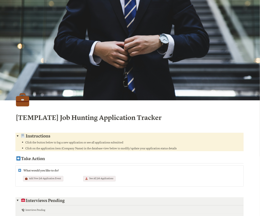 Job Hunting and Application Tracker - Helping job seekers track the status of their job hunt. Includes the database and customized page views to easily see and track interviews, job applications, and status of each one.